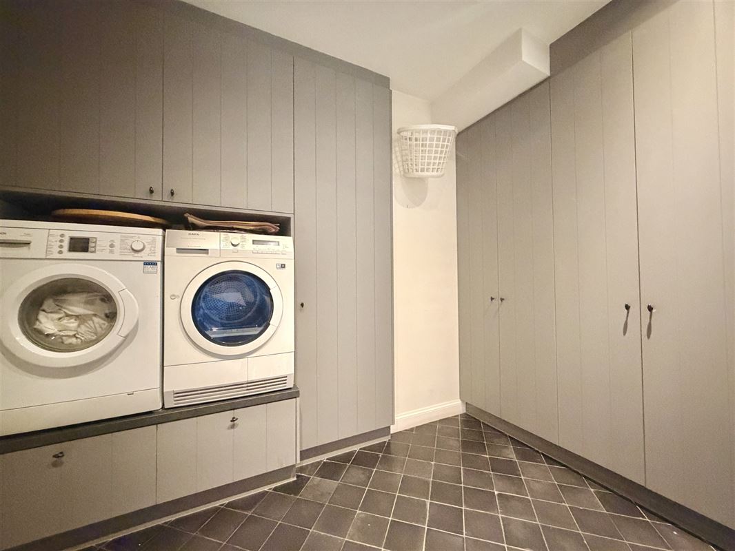 Berging/Bijkeuken 9m² met aansluiting wasmachine/droogkast op hoogte en ingemaakte kastenwanden.