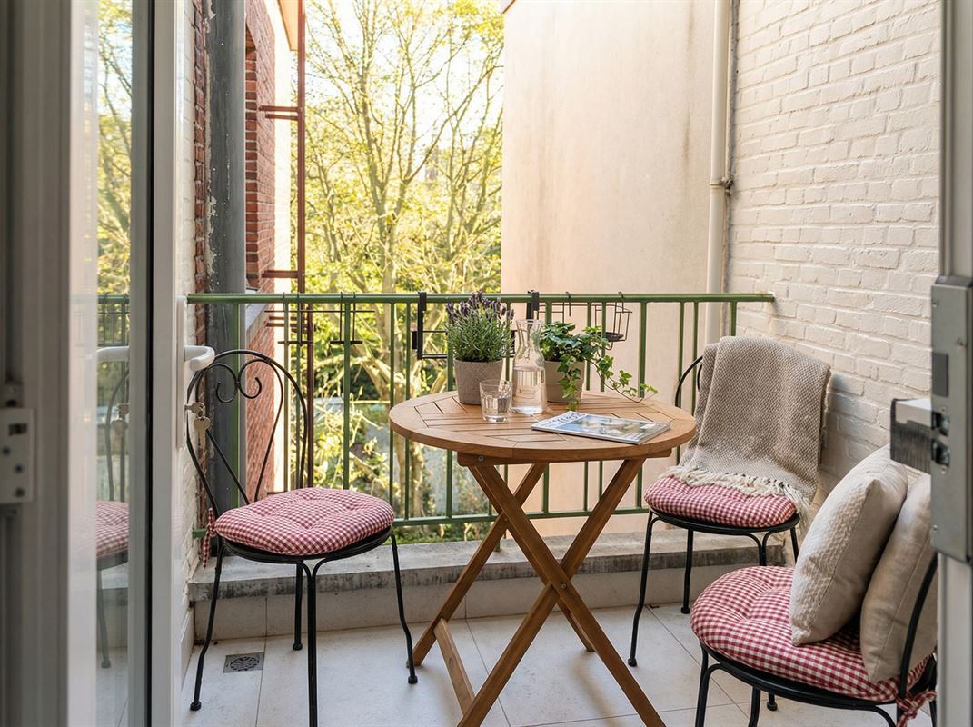 Het appartement is op de bovenste verdieping van een kleinschalig gebouw, waardoor rust en privacy gegarandeerd zijn. Het werd recentelijk opgefrist, met behoudt van vele authentieke elementen en is voorzien van een nieuwe keuken en badkamer, dubbele beglazing en 2 gezellige terrasjes.