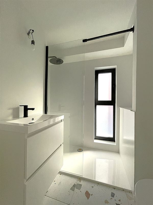 Polyvalente ruimte met moderne regendouche en enkele lavabo